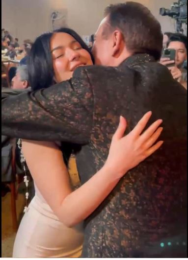 During the event, Hania met Tauqeer Haider, who played her father in the drama. Both performers complimented each other’s performances, and Hania hugged him onstage. In another viral video, she was seen cuddling Fahad Mustafa, who played her on-screen husband in the drama.
