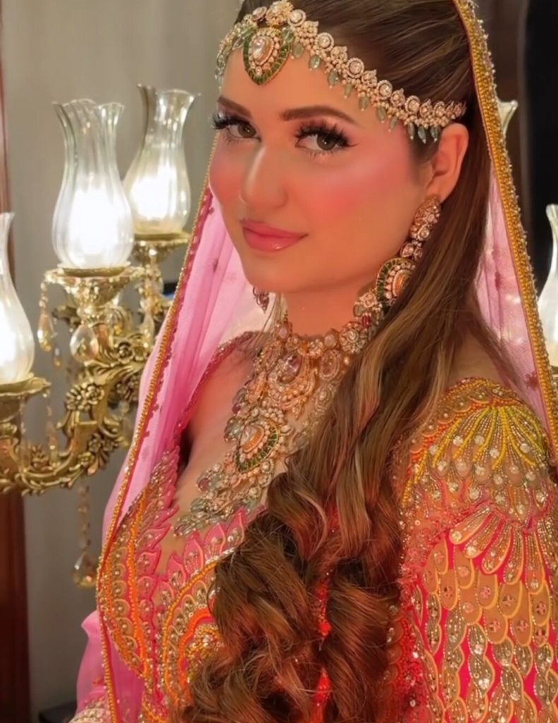 Yesterday, close family members and friends attended the mehndi ceremony, which was held at a private location in Lahore. The bride donned a net dupatta that went well with her sophisticated pink lehenga and choli, which were embellished with delicate golden and multicolored embroidery.